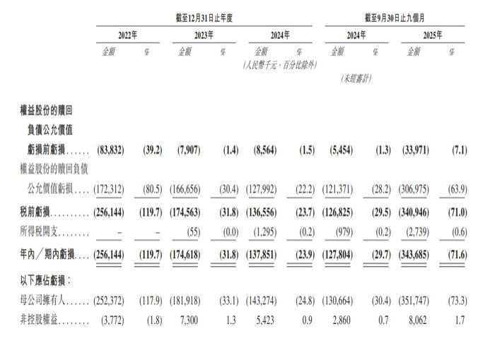 剔除金融负债因素后,真实的经营亏损状况其实在恶化。数据显示,扣除赎回负债公允价值变动前的亏损,2022年为8383万元,2023年大幅改善至7907万元,但2024年又反弹至8564万元。进入2025年,情况急转直下,前九个月该项亏损即高达3397万元,而2024年同期仅为545万元,同比暴涨523%。这意味着,尽管公司账面上通过金融负债的会计处理“粉饰”了部分亏损,但主营业务的实际盈利能力并未好转,甚至在2025年出现了断崖式滑坡。