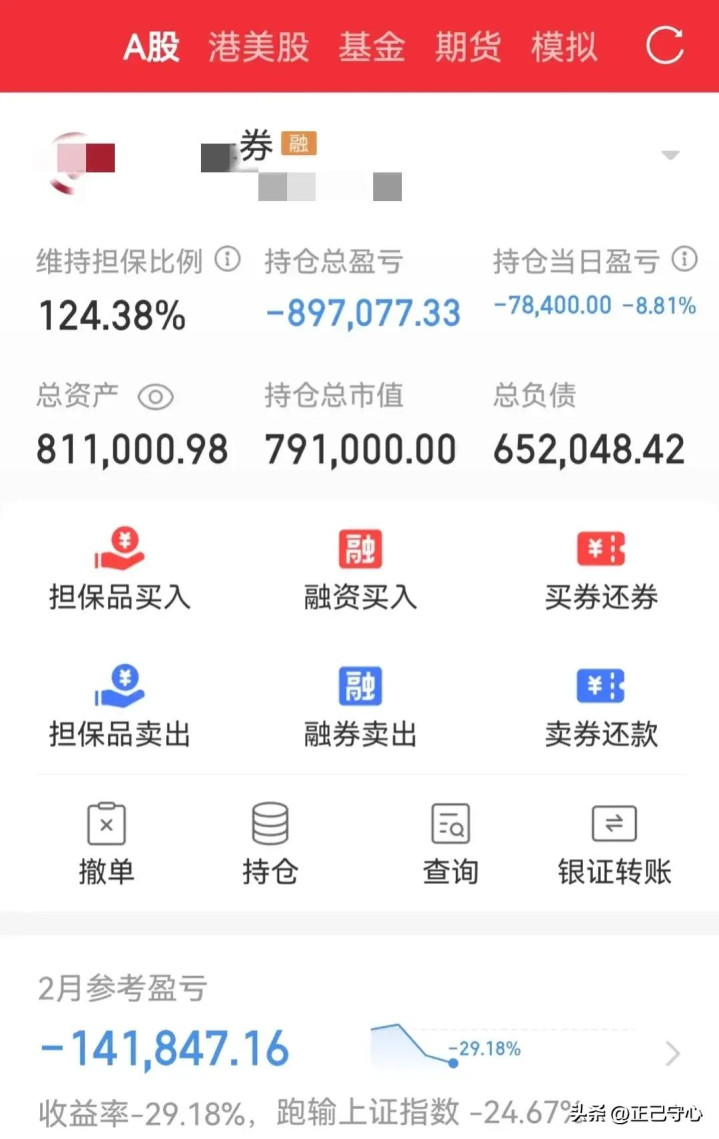 挨打了两年多,吃糠咽菜了两年,最近一年在一直坚守中终于苦尽甘来,股票账户从24年2月频频低于融资担保比例要爆仓,账户亏损了近百万,最低点卖了2万多股天通,贷一堆高利率的网贷,还卖了老婆的黄金首饰才勉强维持担保比例不至于被平仓。